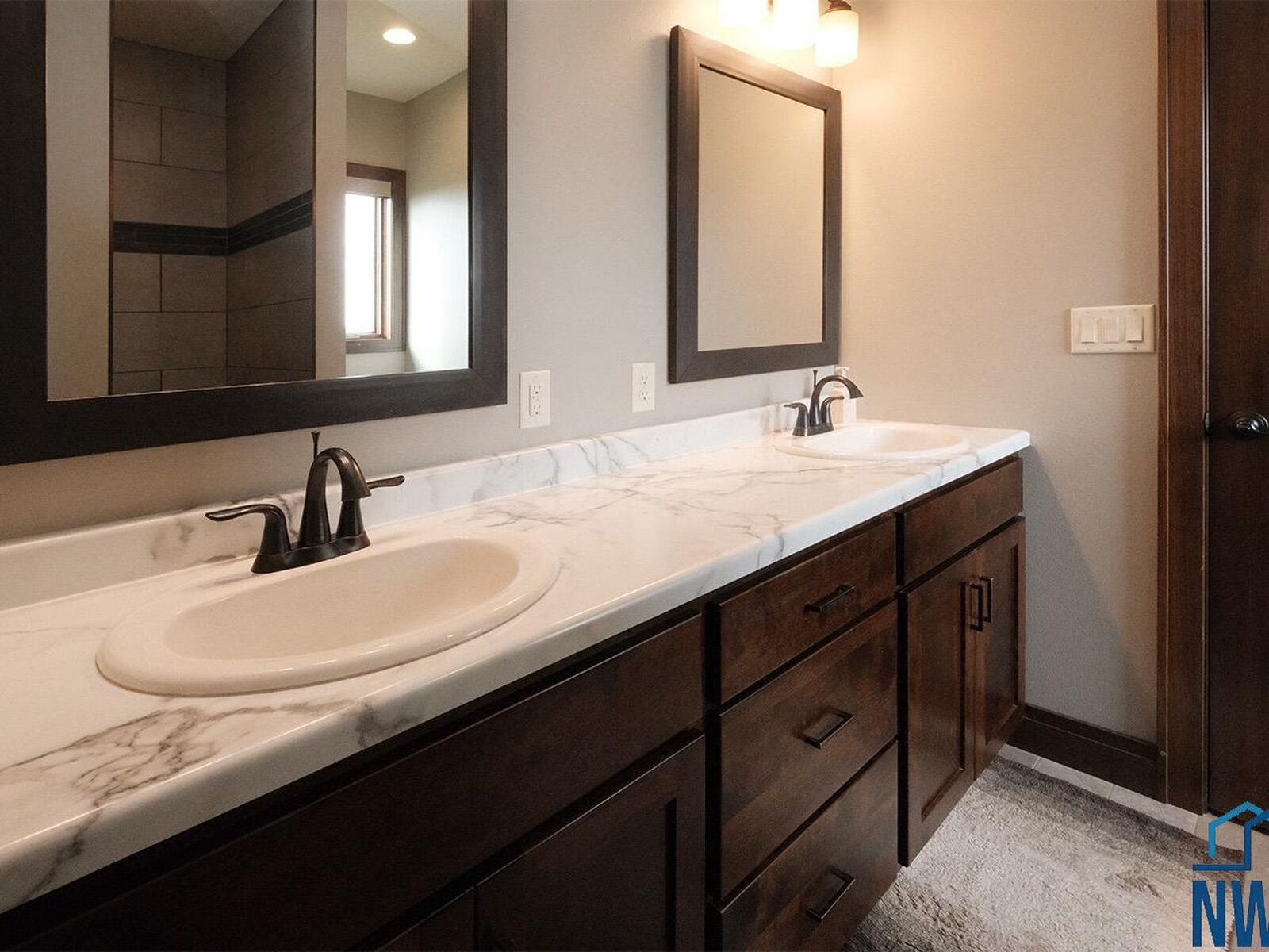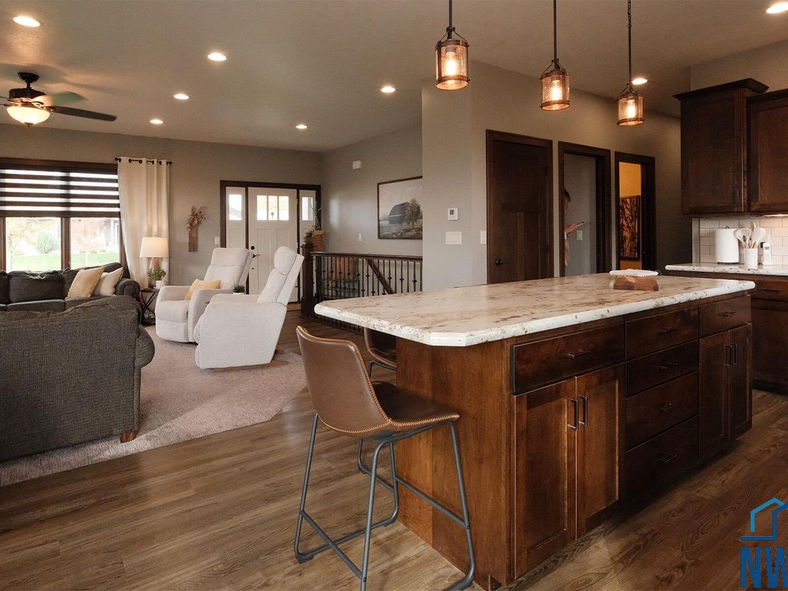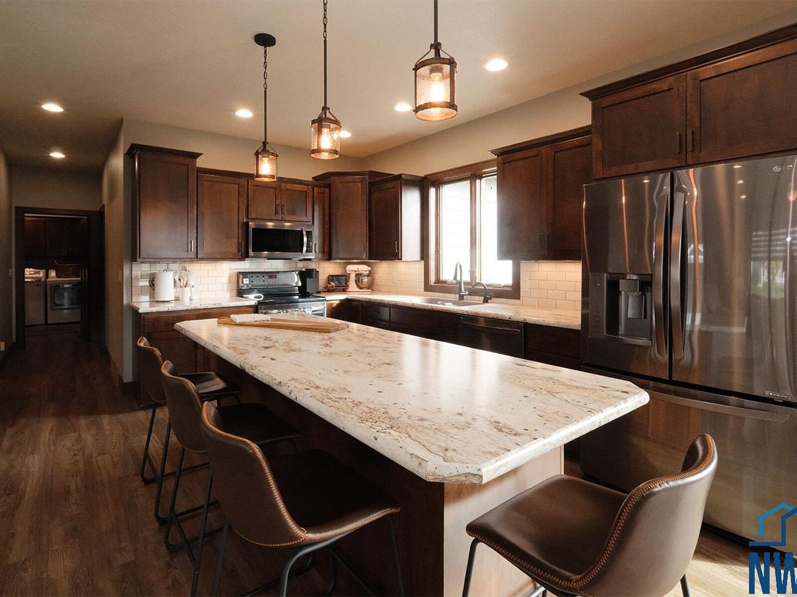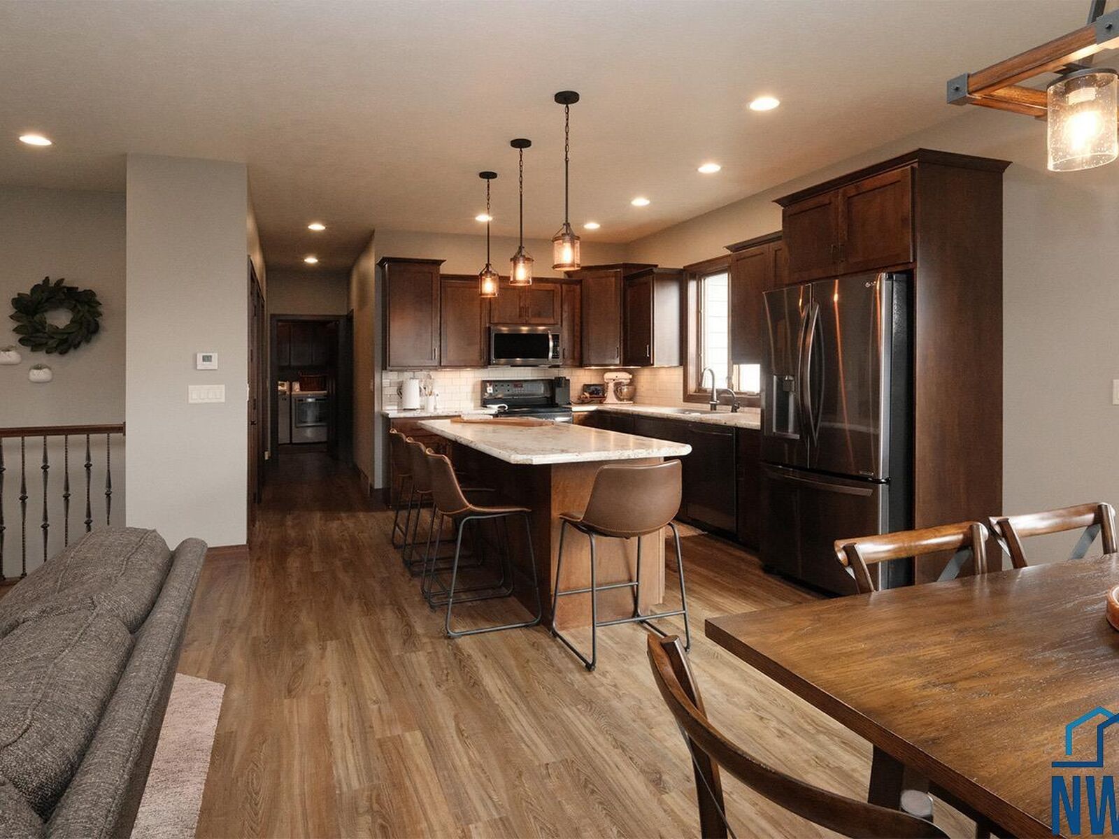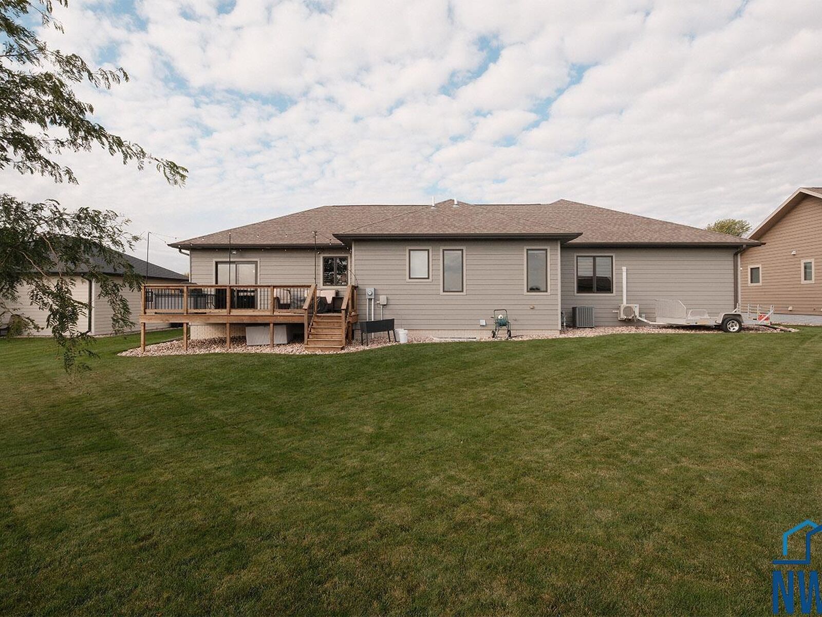 View PropertyQuality construction, tremendous location and curb appeal, functional floorplan, and an option for an in-home business/office are a few things to love about this new Sioux Center listing! Built in 2016 with ameneties of newer construction, this home offers 1,800+ square feet of living space, along with a full/finished basement and 3+ stall garage! The welcoming front entry greets you into the spacious and open concept living room with electric fireplace, functional dining room with deck access, kitchen with custom cabinetry and island with seating! The main floor is also home to a primary suite with en-suite bath offering tiled walk-in shower, dual vanities and walk-in closet, additional bedroom, guest half bath and laundry! The full basement is finished with a large family room, 2 additional bedrooms, full bath and storage! You won't want to miss the convenient option for in-home business; spacious salon/office space with private exterior entrance, along with additional garage access and private half bath! Situated on a large 0.34 acre lot, established lawn with irrigation system, wood deck, storage shed, and well-cared for landscaping - this home truly checks all the boxes!