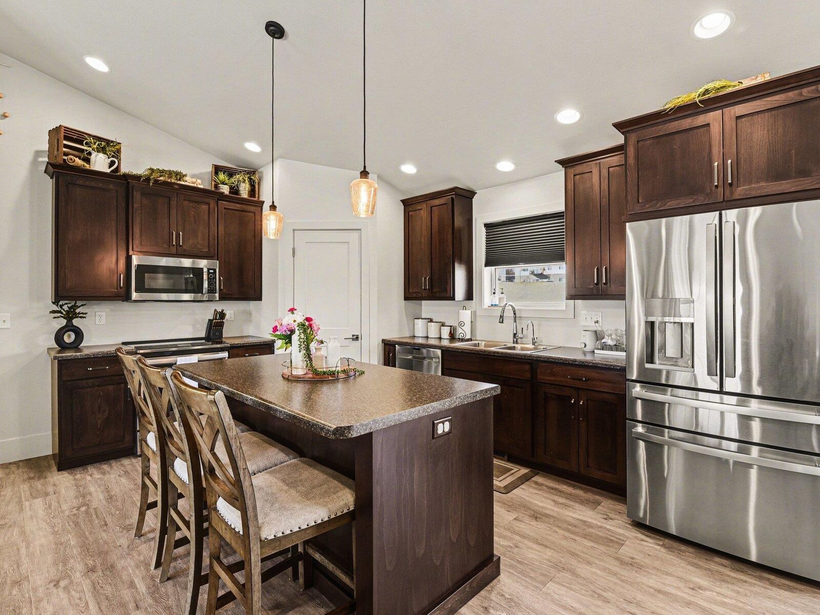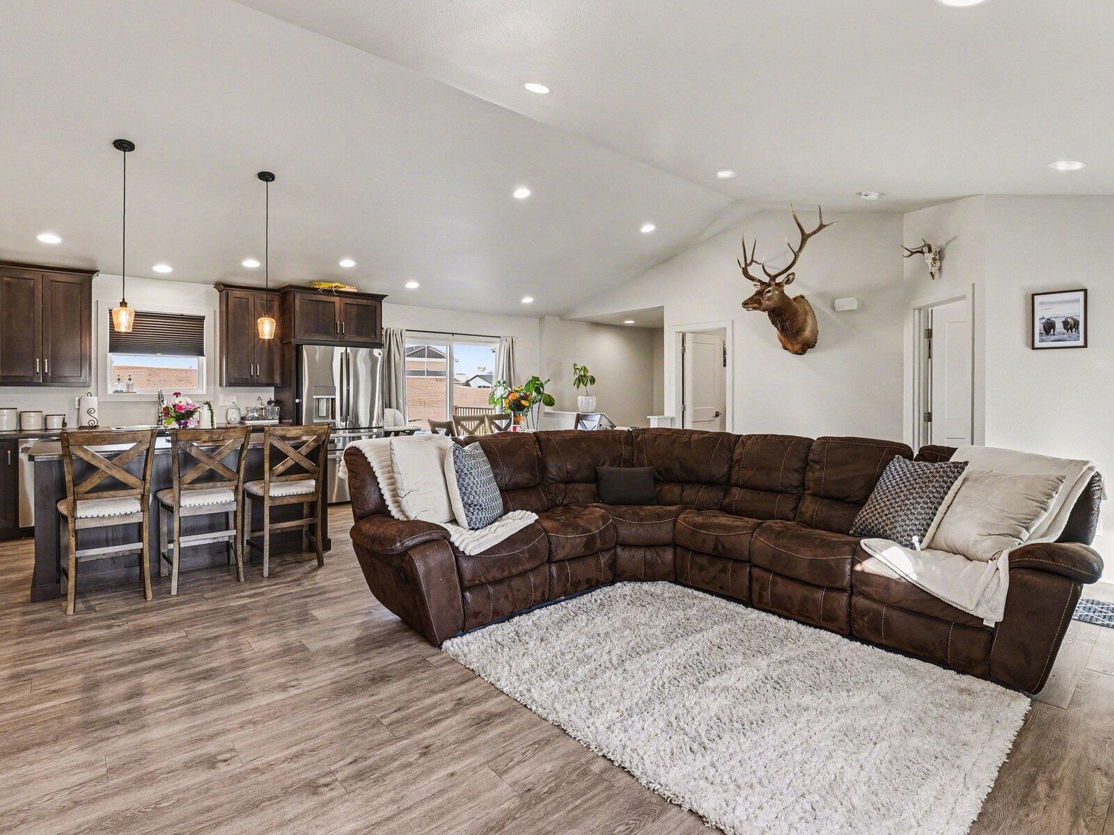 View PropertyWelcome to this beautifully designed 4-bedroom, 3-bathroom home built in 2021, offering modern comfort and thoughtful upgrades throughout. The inviting open floor plan creates a seamless flow between the living, dining, and kitchen areas perfect for everyday living and entertaining. The spacious kitchen features a walk-in pantry, ample cabinetry, and generous counter space to meet all your storage and cooking needs. Enjoy cozy evenings by one of the two fireplaces, adding warmth and charm to both the main living area and additional gathering space. Step outside to a large composite deck, perfect for relaxing, grilling, or hosting guests while enjoying low-maintenance outdoor living. Convenience is key with main floor laundry, plus additional washer and dryer hookups in the finished, heated garage ideal for hobby space, extra appliances, or added flexibility. The finished and heated garage provides year-round comfort and functionality, whether for parking, projects, or storage. With stylish finishes, flexible living spaces, and modern efficiency, this nearly new home offers the perfect blend of comfort and sophistication. Don’t miss your opportunity to make it yours!