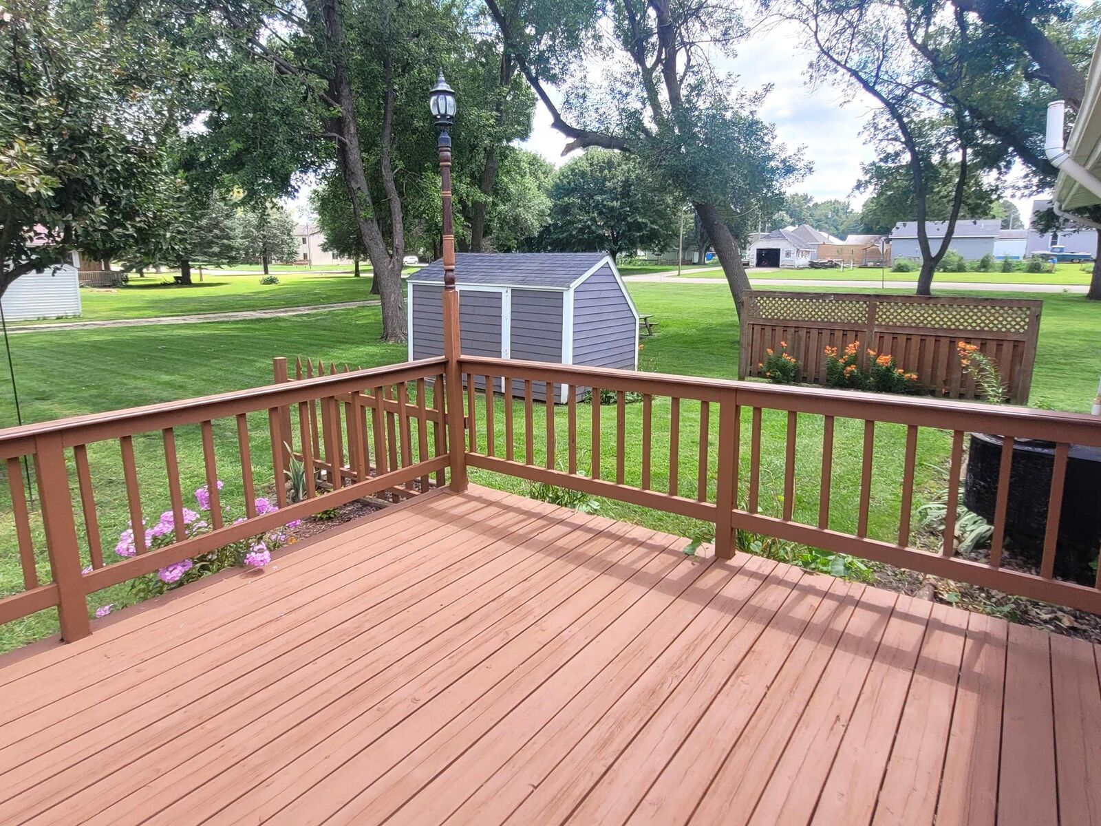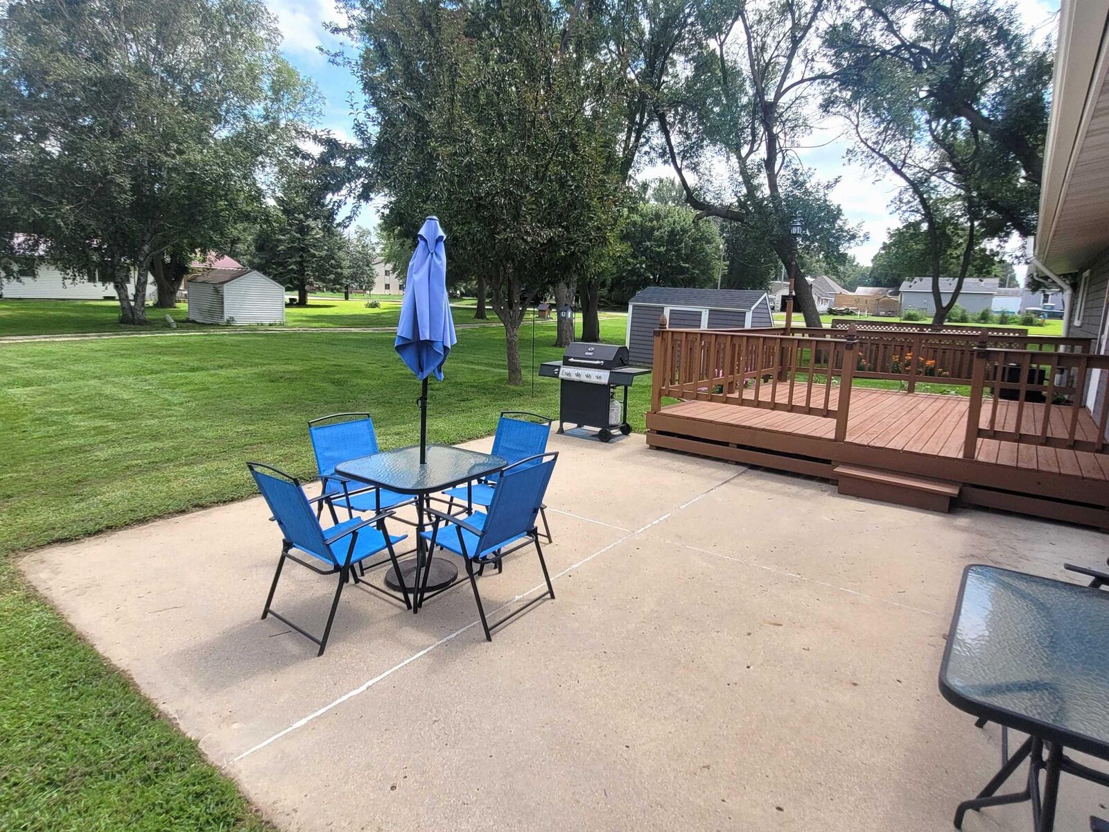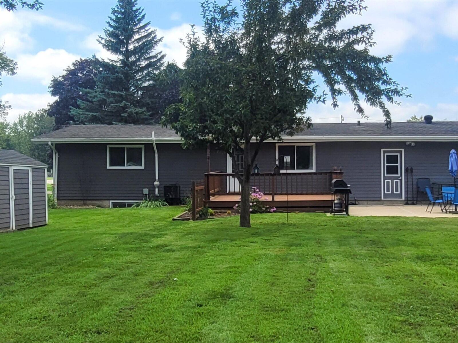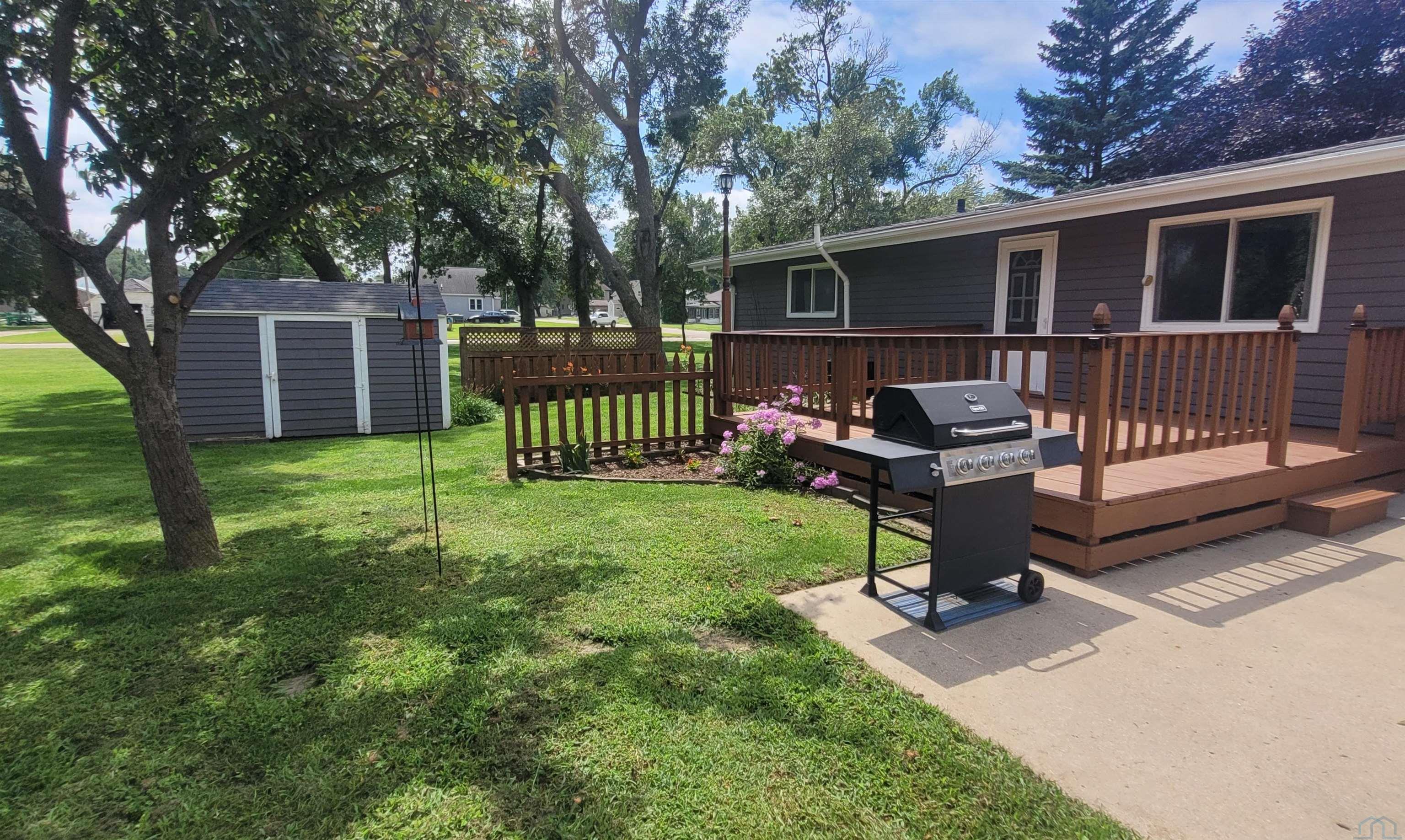 View PropertyThis is a very nice, move in ready, ranch style home located on a huge corner lot. The extra large lot will give a new owner plenty of options for their own future expansion projects. If you've always desired room for an addition onto your home or to build an extra garage or shop, or maybe even just extra room for the outdoor activities, than you will love what this property has to offer. The house features three bedrooms, one and one half baths and a double stall attached garage. The vaulted ceilings in the living room and kitchen give it a spacious feel. There have been many updates in recent years to this home to include newer kitchen cabinets, appliances and flooring throughout many rooms in the house. Even brand new rain gutters on the entire house were professionally installed last week! Improvements were also made to the bathrooms to include an Onyx walk-in shower. The basement has plenty more space and untapped potential. The exterior walls of the basement have just been painted giving it a bright, clean feel. If egress windows were to be added, there is plenty of space for additional bedrooms, and a new owner could still have plenty of room for a rec room, family room or additional bathroom with some plumbing already roughed in for that purpose. The back yard offers a nice wooden deck and concrete patio to entertain guests for the afternoon or evening cookout. The extra lot is accessible on three sides because of the convenient alley access across the backside of the property. The eat in kitchen has stylish black and stainless steel appliances with beautiful oak cabinets. The owner is negotiable on many other items including a John Deere 100 Series riding lawn mower, a freezer and fridge in the garage, patio furniture, dining room set, 70" TV w/ stand, bedroom suite, dehumidifier and more!!
