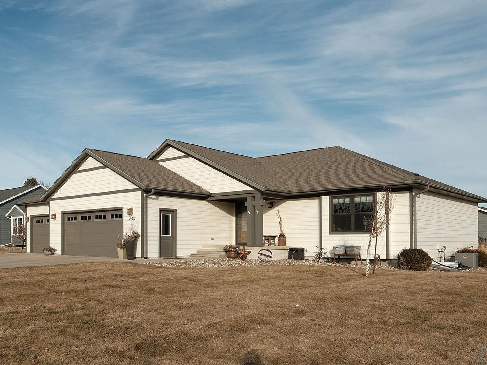 View PropertyExperience refined comfort in this exceptional 5-bedroom, 3-bathroom ranch home in Sioux Center. Thoughtfully designed with expansive living spaces and vaulted ceilings, the main living area offers an impressive yet inviting setting for both entertaining and relaxed everyday living. The well-appointed kitchen and functional floor plan provide effortless flow, complemented by the convenience of main-floor laundry and included appliances. The beautifully finished lower level extends the home’s versatility with three additional bedrooms, a full bath, and a spacious family room ideal for hosting guests or creating a private retreat. A true standout feature, the fully insulated, heated, and finished garage offers an unforgettable space with exceptional finish and ambiance. Complete with lawn irrigation, extended concrete for outdoor entertaining, and a generous lawn shed, this property presents a distinctive opportunity to enjoy an established neighborhood and is move-in ready. Average utilities $310