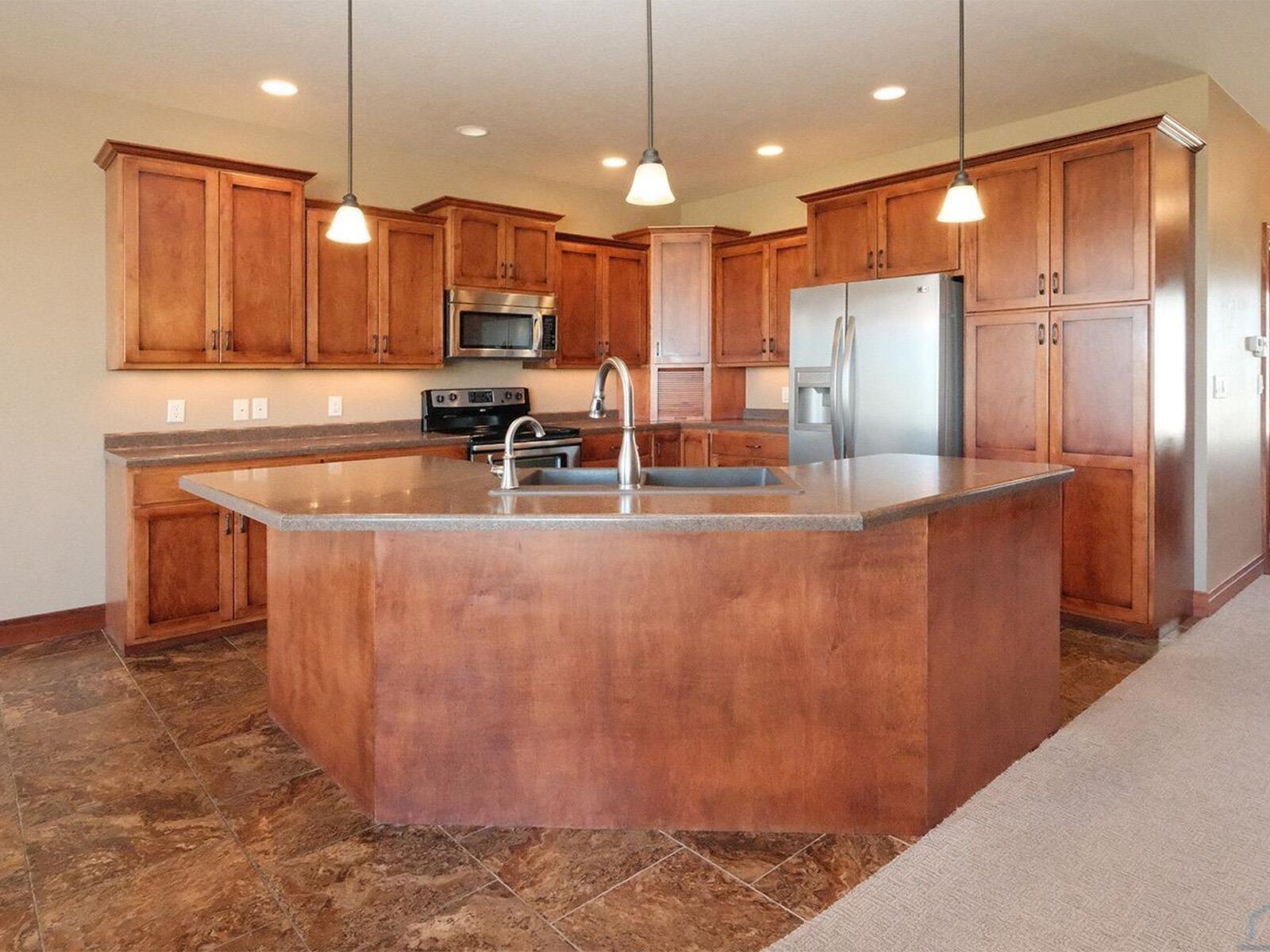 View PropertyPeaceful and serene on-course views, functional and simplified living, and tremendous location are all offered in this new Sioux Center condo listing! Situated the Summerset Condos at the Ridge development, this 1,600 square foot condo offers 3 bedrooms, 2.5 baths, and a functional 2 stall attached garage! This condo offers a warm welcome home with great curb appeal, established lawn and landscaping, welcoming front entry and foyer, and beautiful views! The spacious main floor offers large family room with stacked stone electric fireplace and built-ins, functional dining room with deck access, large open concept kitchen with large island and ample storage, guest half bath, primary suite with 3/4 bath en-suite, linen storage and walk-in closet, along with a functional laundry room with ample storage and walk-in pantry! The full basement is finished with large family room, bedroom, full bath, den/office and large storage room! **Subject to Summerset HOA and Ridge On-Course Fees.