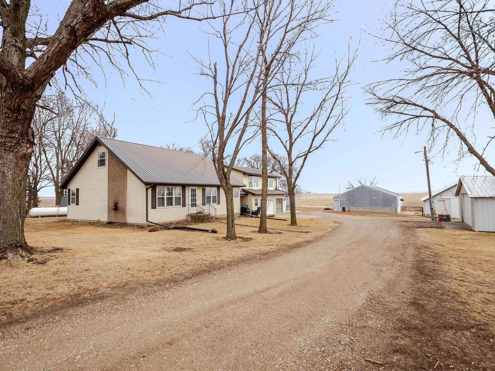 View PropertyHere is your dream acreage just 1.25 miles south of Highway 18 and .75 miles north of county road B20, ideally located between Hartley and Everly. This meticulously maintained property offers the perfect blend of comfort, functionality, and rural charm. The spacious home features 4 bedrooms and 1.75 baths, with a thoughtfully designed layout. The well-appointed kitchen includes newer appliances and flows conveniently into the main living space. This home is equipped with main-level laundry and dedicated canning room perfect for preserving the harvest from your own backyard. You’ll love the cozy living room, private office space, and the upper-level great room complete with built-ins, offering abundant space for relaxing or entertaining. The lower level provides additional storage, adding to the generous storage options found throughout the home. Comfort is ensured year-round with two pellet burners, forced air gas furnaces, and central air. Fiber internet is available. The outbuildings set this acreage apart. All feature durable metal roofs and exteriors and include: 24’ x 24’ detached garage 60’ x 54’ Morton building for cold storage Heated 26’ x 40’ building 36’ x 72’ x 12’ building with half heated/cooled and half cold storage 60’ x 48’ cold storage building Heated and cooled 26’ x 36’ gym Whether you need space for hobbies, business operations, equipment storage, or recreation, this property delivers unmatched versatility. For those who enjoy gardening and homesteading, this property offers a beautifully maintained 30’ x 30’ fenced garden complete with raised beds featuring grapes, strawberries, raspberries, and blueberries. You’ll also appreciate the established blackberry bushes and a variety of new fruit trees, including apples. This exceptional acreage offers more than just a home — it offers a lifestyle. UTILITIES INFO - AVERAGE MONTHLY TOTAL: $390.00 - Electricity: NW REC; Water: Osceola Rural Water; Gas: Sibley Coop - 2 Propane Tanks