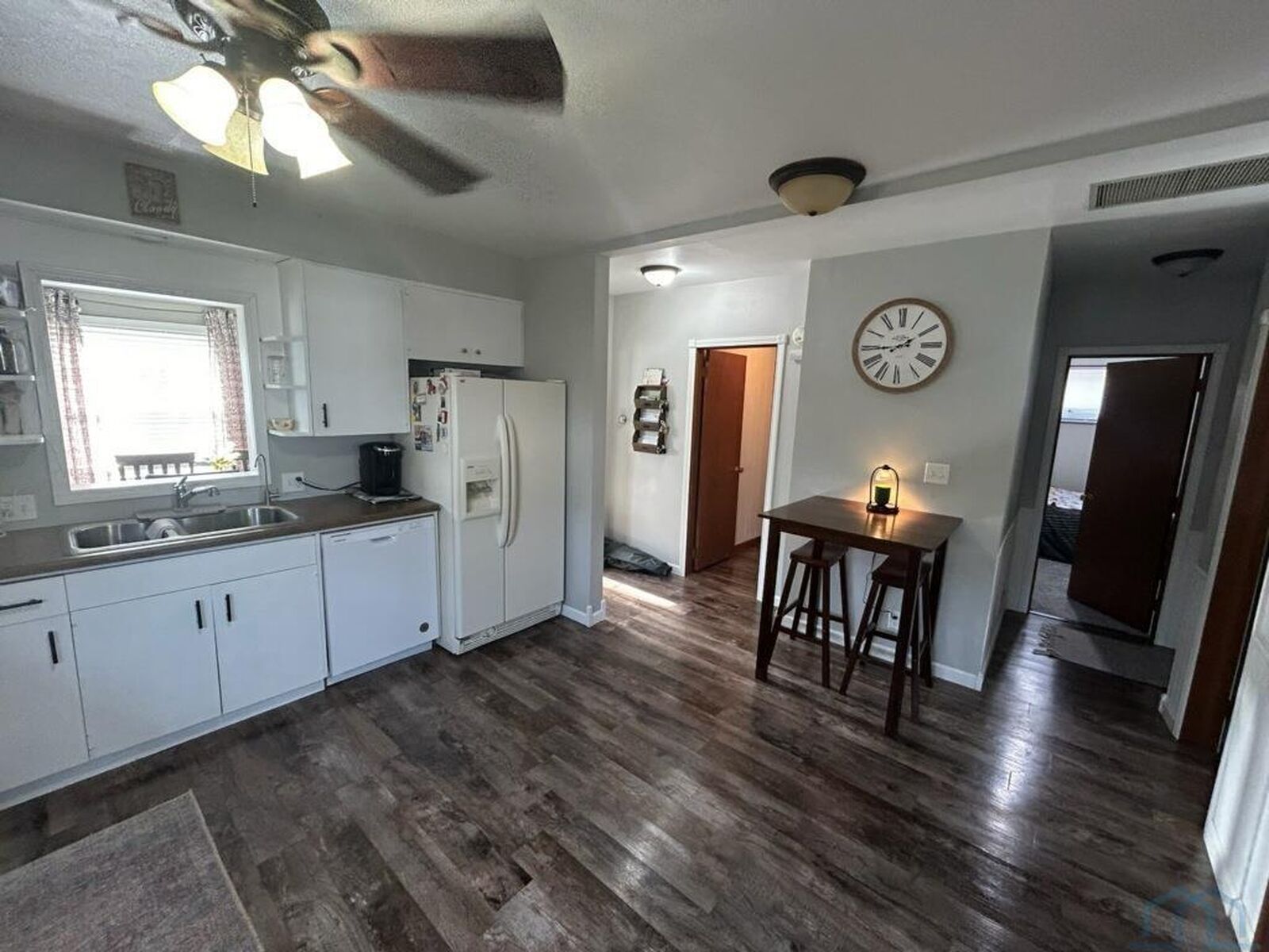 View PropertyNice four beedroom and 2 bath home that is very reasonably priced and is ready for you! Two of the bedrooms are on the main floor and two upstairs with the baths on both floors. What a cozy and bright living and dining as they are right up front for a view of the neighborhood. Kitchen is cheery and has white cabinets a breakfast area and all appliances included. Laundry and a back entry are on the main floor. Main floor bath has a walk-in shower and a jet tub and second floor bath has a shower. What a garage! Room for four cars with both a front access and an alley access plus a furnace for warmth in the winter. Check this one out! Average utilies for gas and electricity is $145 per month.